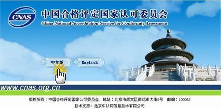 (三)通過國家認(rèn)可委(CNAS)網(wǎng)站查詢 1、登陸CNAS網(wǎng)站www.cnas.org.cn,點擊“中文版”,進(jìn)入國家認(rèn)可委網(wǎng)站中文首頁;