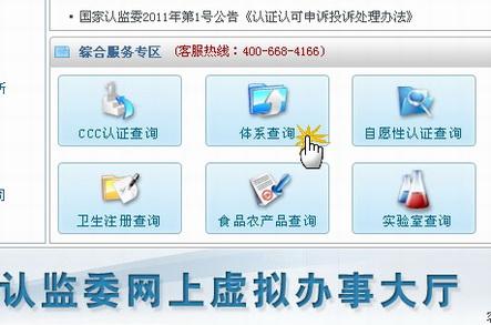 2、于首頁中部“綜合服務(wù)專區(qū)”,點擊“體系查詢”,進(jìn)入體系查詢頁面;