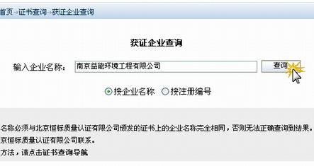 4、將完整的“證書編號”或“企業(yè)名稱”輸入信息欄,點擊“查詢”;